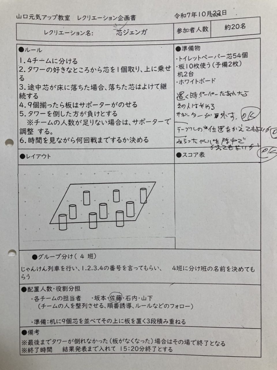 「芯ジェンガ」は、初めてのレクゲームでしたが大盛り上がり!