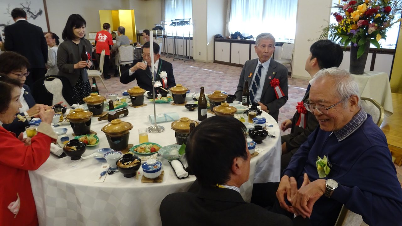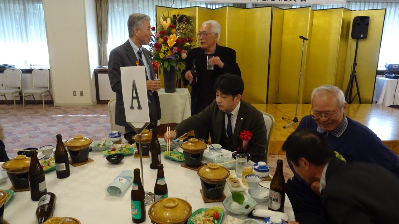 司会は松田美也子さん(7期)。和やかな雰囲気の中、乾杯の音頭は坂田浩章 様(健康福祉部長)が務められました。
