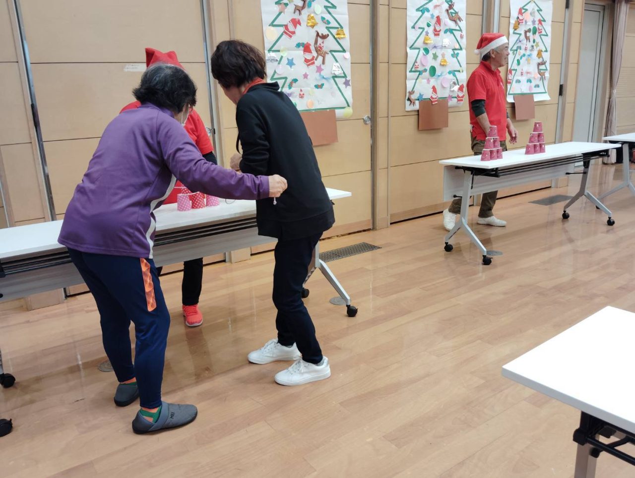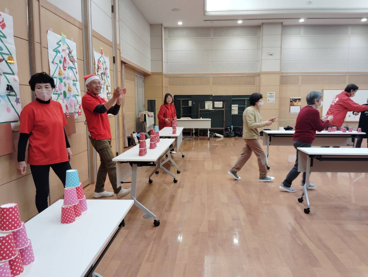 - 「ジングルベル」のリズムに合わせて楽しく体を動かすリズム体操。自然と笑顔が広がりました。